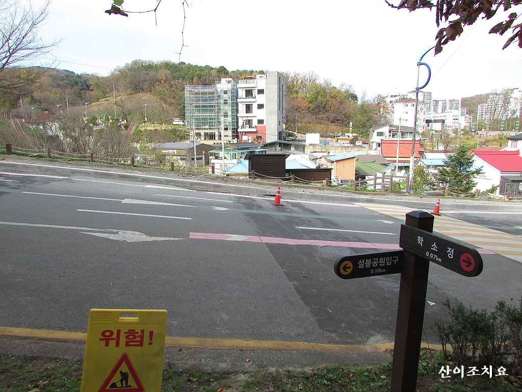 도로에 내려선후 설봉공원 입구 0.10km 방향으로