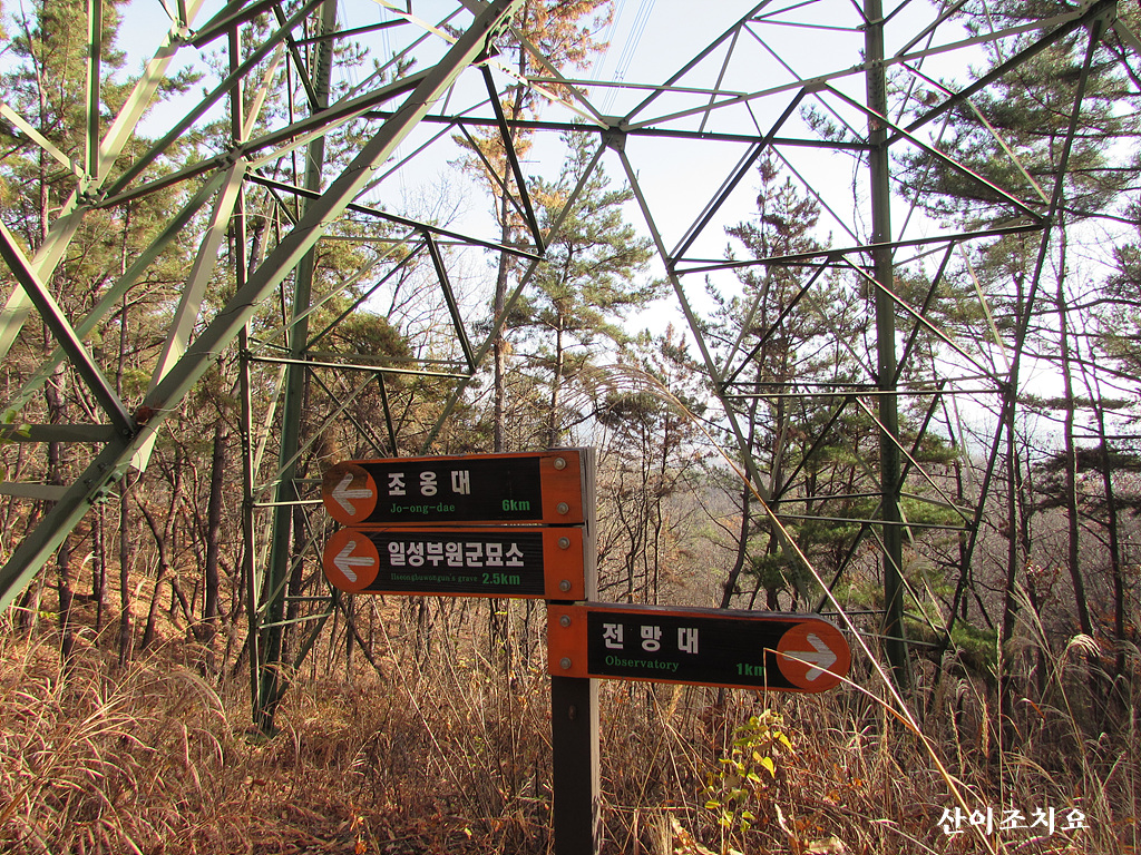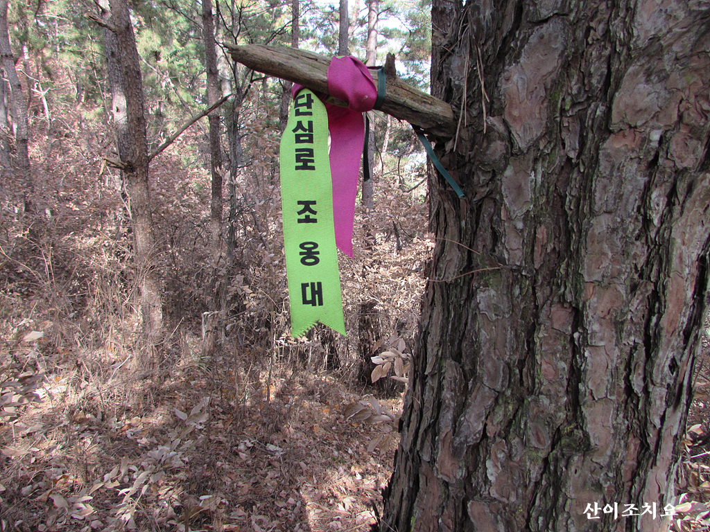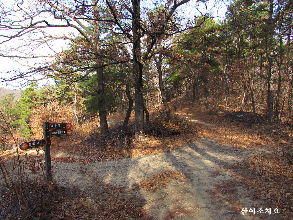 기룡지맥 분기점 갈림길-조옹대2.5km 이정표-성황당고개안부-